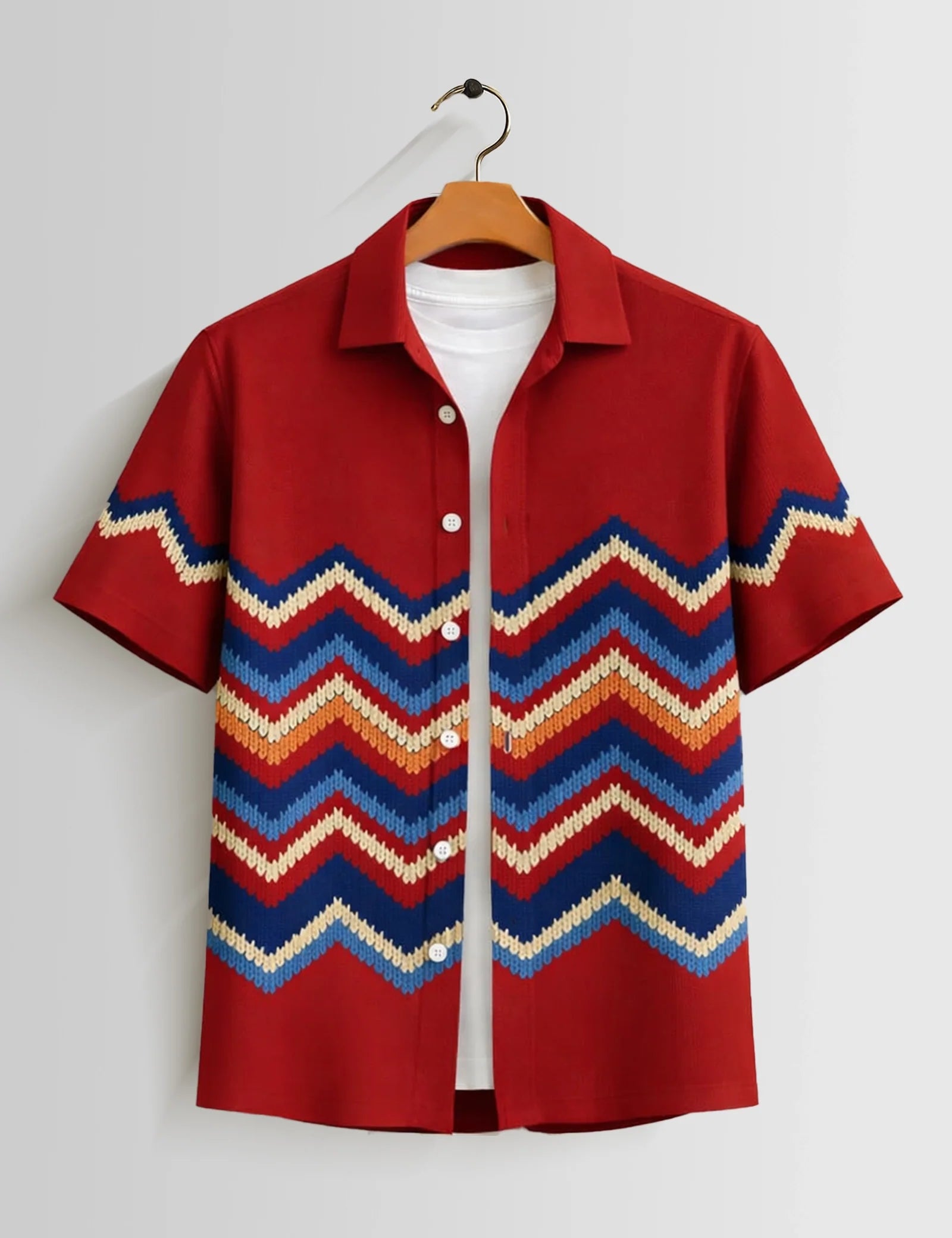 Red Zigzag Mens Half Sleeves Shirts - XPST