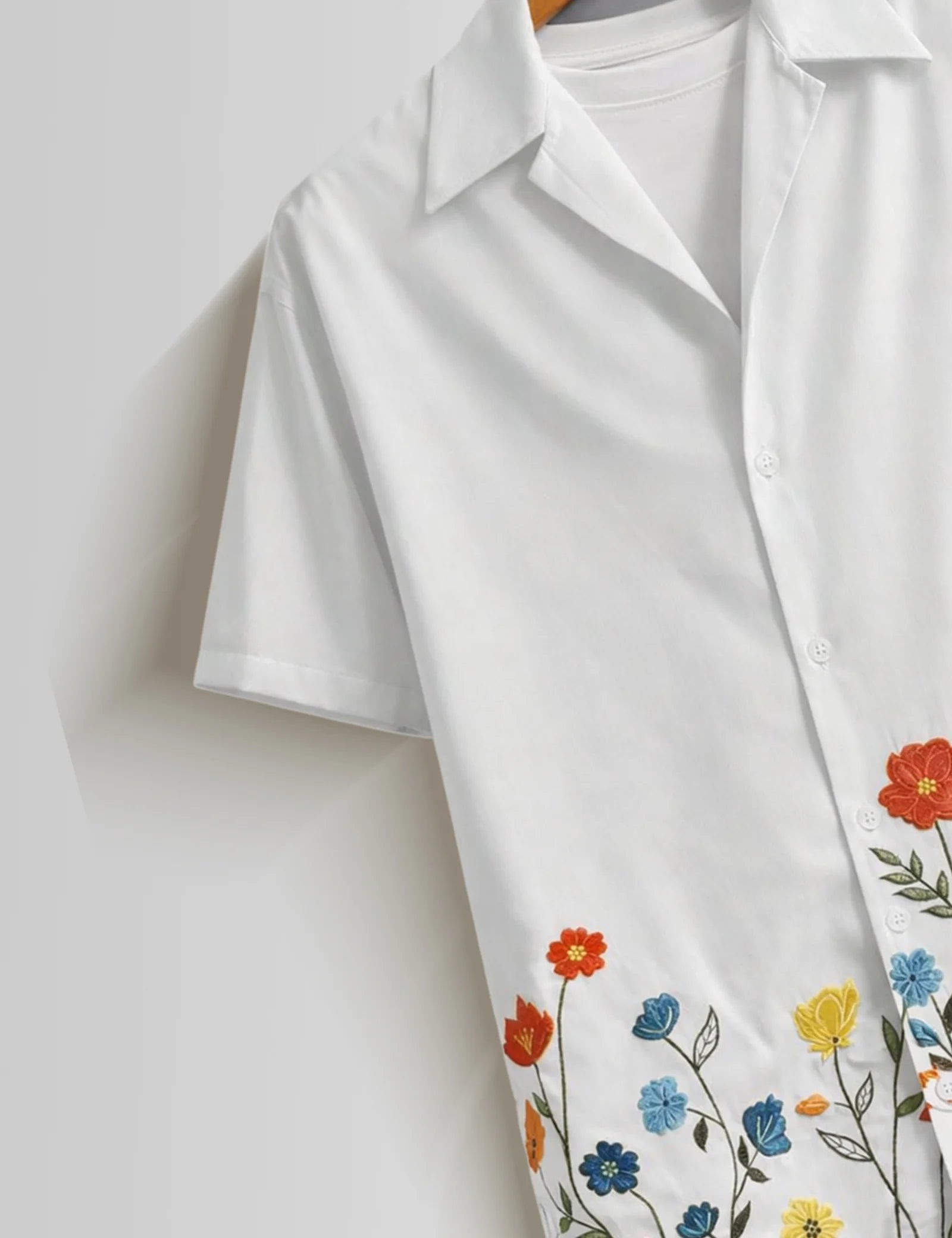 White Bottom Flower Mens Half Sleeves Shirts - XPST